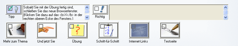 Tipp In einer künftigen Version von Web Course Builder wird es Standardfunktionen für das Kopieren, Einfügen, Ausschneiden und Rückgängigmachen geben. Gegenwärtig verwenden Sie dazu die folgenden Tastenkombinationen. Wenn Sie etwas rückgängig machen wollen, drücken Sie STRG+Z (Halten Sie die Taste STRG gedrückt und drücken Sie die Taste Z). Zum Kopieren drücken Sie STRG+C, zum Einfügen STRG+V und zum Ausschneiden STRG+X. In einer künftigen Programmversion wird es auch möglich sein, Text fett und kursiv zu schreiben.