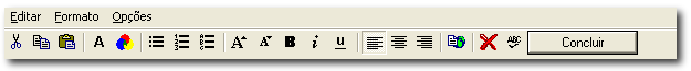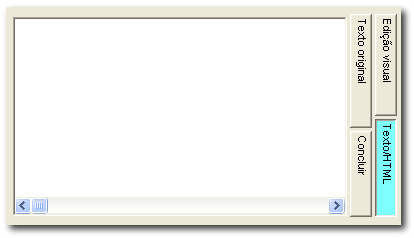 Ao adicionar texto (conteúdo) numa das caixas voçê irá reparar que cada caixa de texto apresenta três separadores além do separador "Concluir".