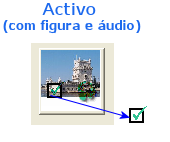 Quando se encontra inserida uma figura num tópico o botão muda de aspecto e apresenta uma miniatura da figura que lá se encontra como se pode observar na figura à direita em "Activo".