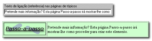 | 2 | O campo é utilizado na página de tópicos para fornecer aos formandos um sumário ou resumo do exercício Passo-a-passo. Por defeito, será inserido um resumo se não for inserido um. Este sumário ou resumo será apresentado no campo de hiperligação da página de tópicos precedente. |