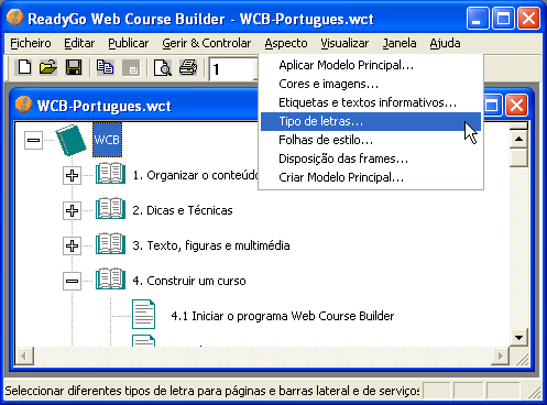 Note Bem Pode também modificar o tipo de letras do curso clicando em Tipos de letra, na janela de Propriedades do Curso.
