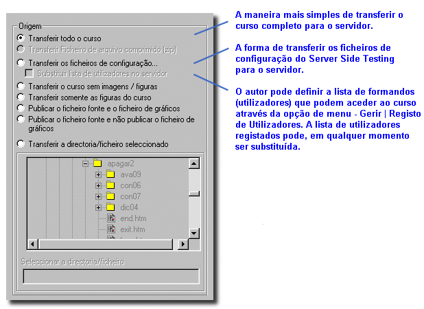 | 2 | O formulário de transferência de ficheiros - Transferir/Actualizar o curso para o servidor do curso - é apresentado. |