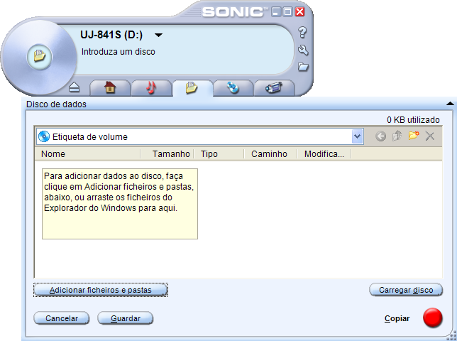 Após inserir a etiqueta de volume poderá arrancar com o processo de gravação do CD clicando no botão adequado. Passados alguns minutos (dependendo da velocidade de escrita da unidade de gravação) terá o CD finalizado.