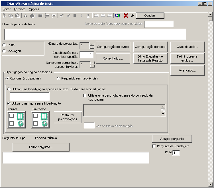 | 5 | Decida quantas questões correctas são necessárias para passar no teste. |