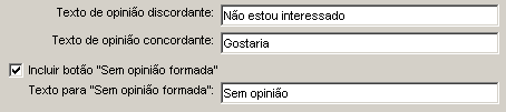 | 5 | Escolha o texto para Texto que pretende mostrar como a escolha mínima e máxima. Opcionalmente, apresente uma possibilidade de escolha Não. |