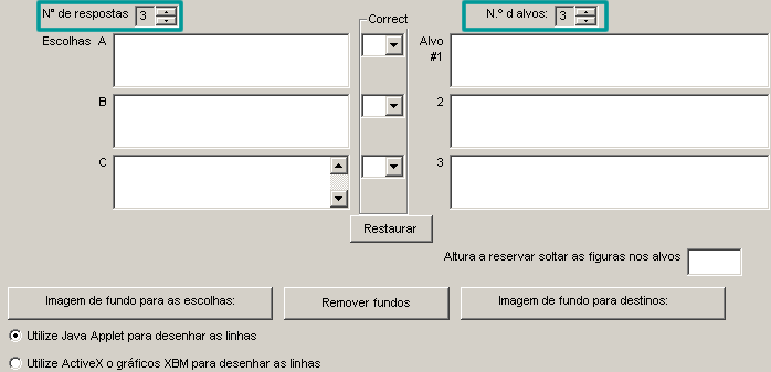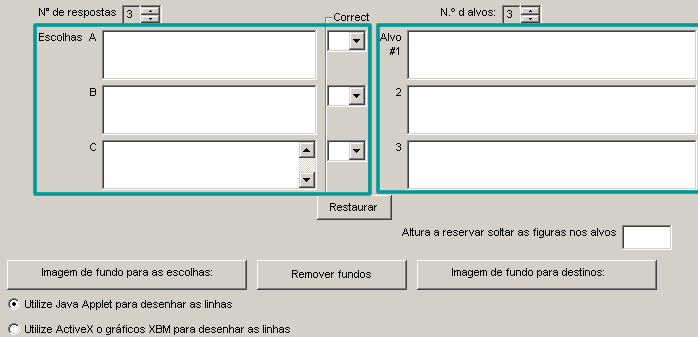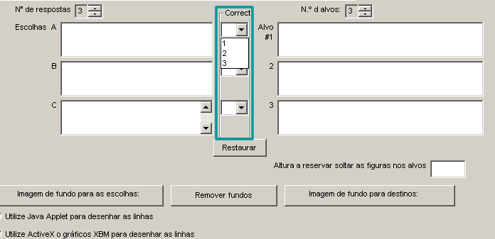| 6 | Defina as correspondência entre cada uma das escolhas possíveis. |