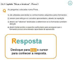 As Provas são elementos interactivos concebidos para ajudar os formandos a aprender através da análise e reflexão sobre questões relacionadas com informação importante no contexto do curso. As perguntas que integram uma Prova não são utilizadas para avaliar os conhecimentos ou capacidades adquiridos pelos formandos. Utilize os testes para essa finalidade.