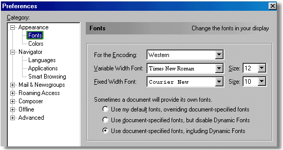 A título exemplificativo da estrutura e utilidade de um exercício Passo-a-passo apresenta-se aqui a forma de alterar os tipos de letras das páginas apresentadas com o browser Netscape. A versão apresentada é a Inglesa.