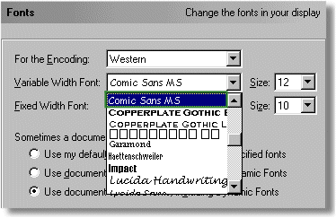 Ao fechar a janela de diálogo o seu browser apresentará o novo tipo de letras seleccionado.