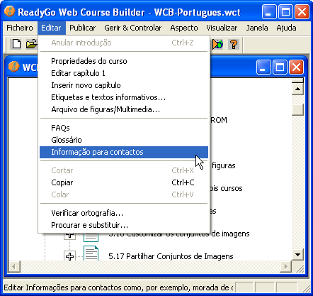Seleccionar a funcionalidade que pretende inserir no curso.